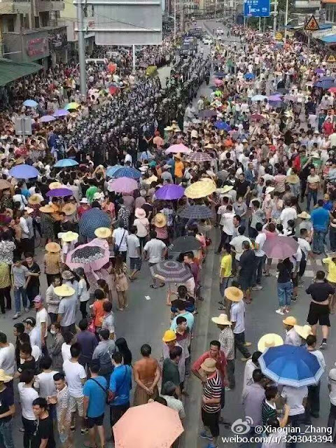 2016年7月3日,广东肇庆市高要区禄步镇,上万人上街示威,抗议政府将于该镇岗头仔村建造垃圾焚烧发电厂项目。
